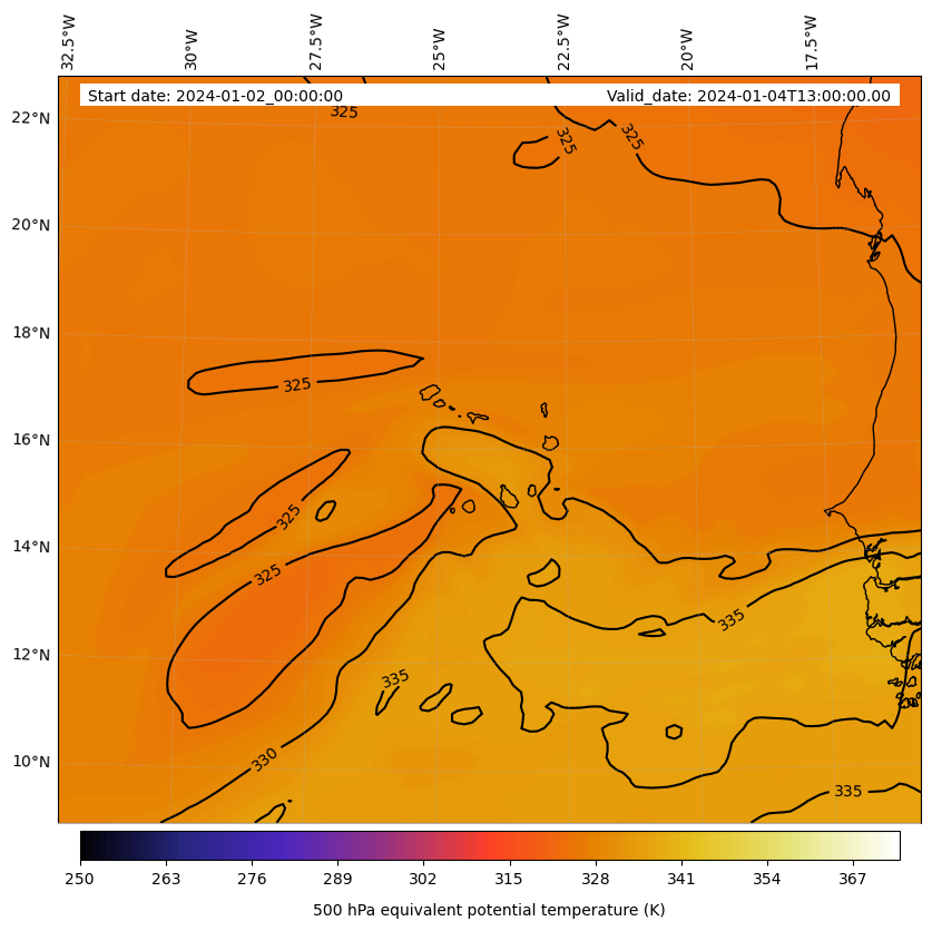 - Equivalent Potential Temperature (K)
