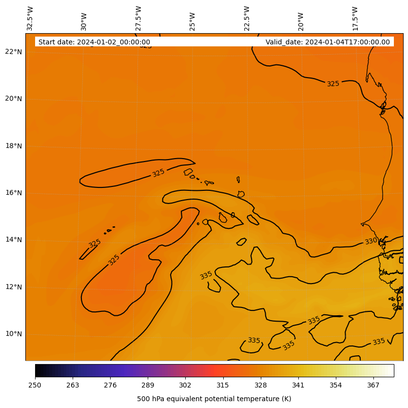 - Equivalent Potential Temperature (K)