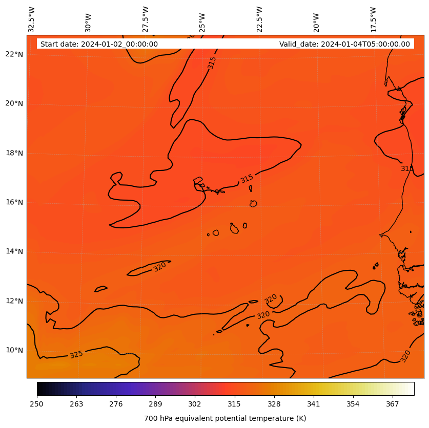 - Equivalent Potential Temperature (K)