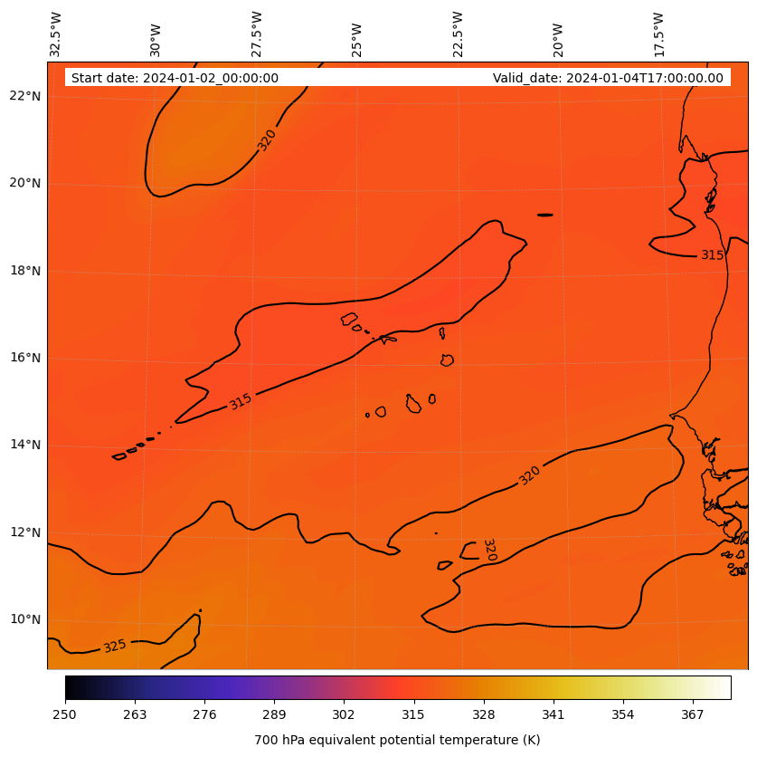 - Equivalent Potential Temperature (K)