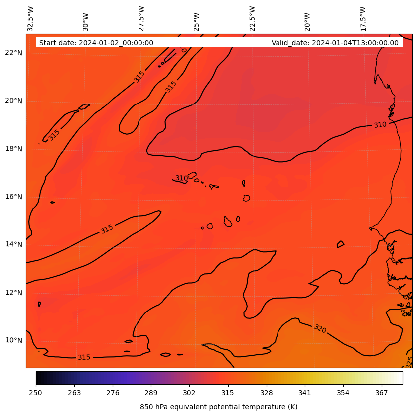 - Equivalent Potential Temperature (K)