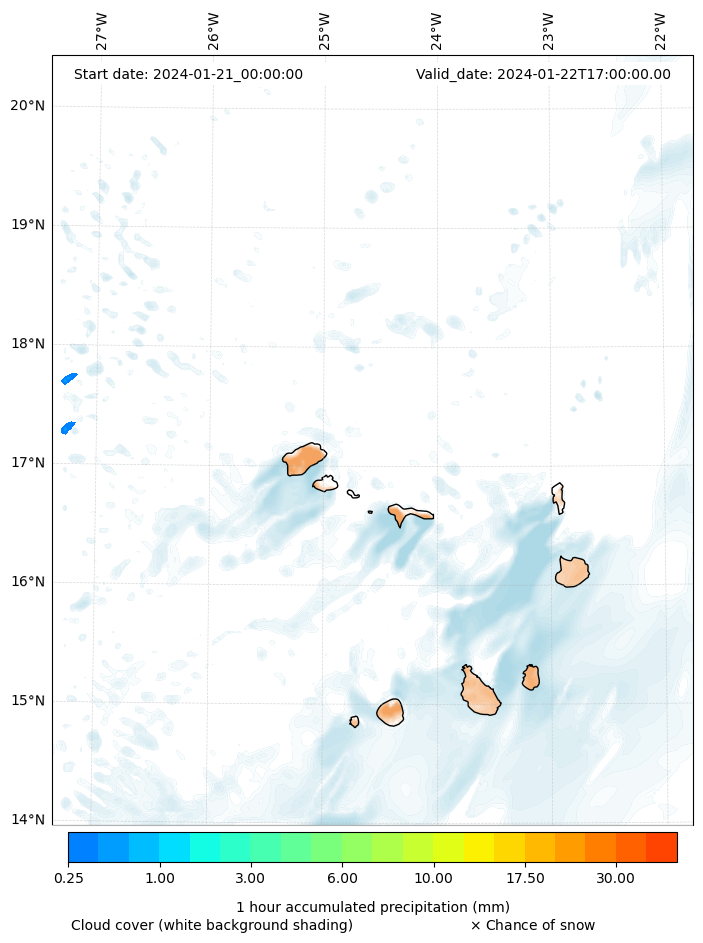 - Snow mixing ratio (g kg¯¹)