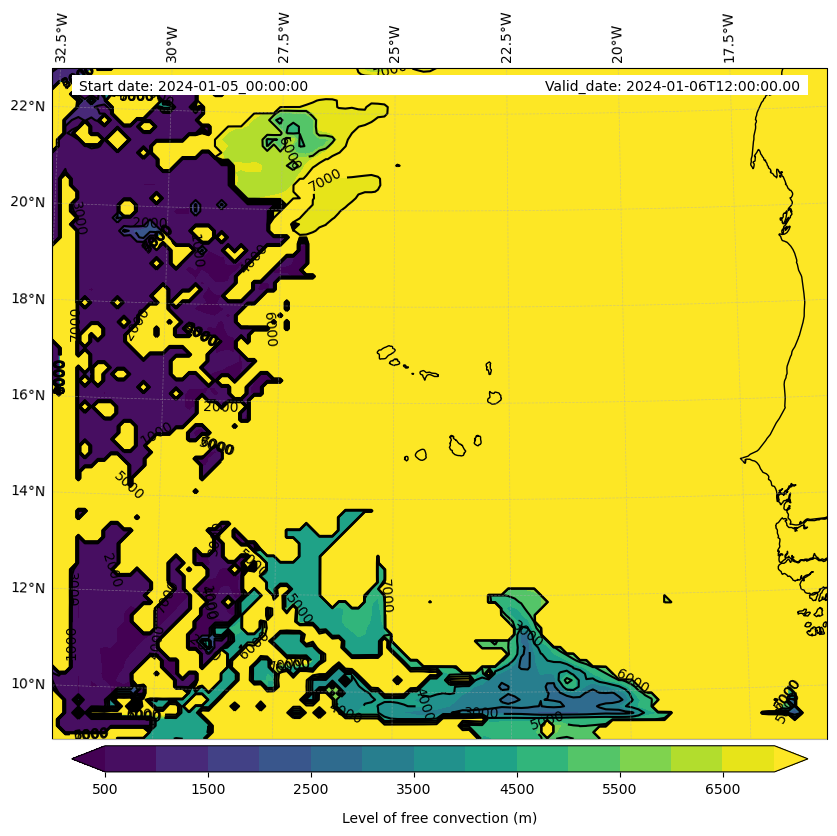 - Level of free convection (m)