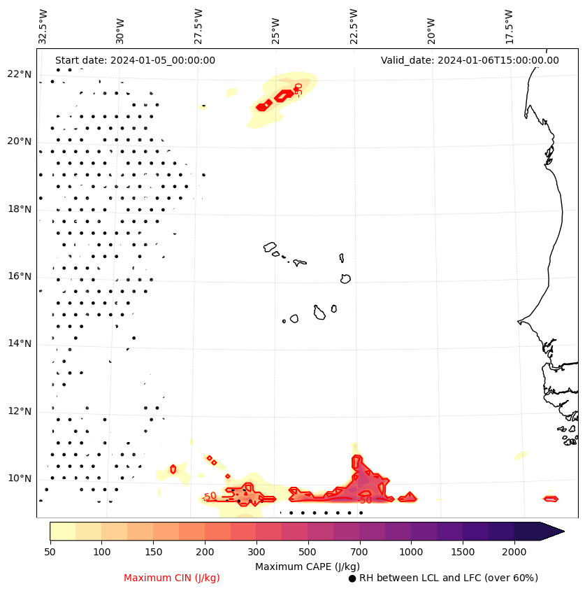 • Maximum CAPE (J/Kg)