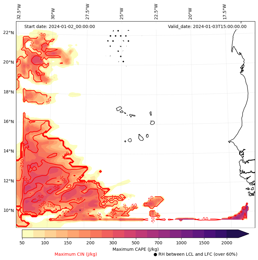 • Maximum CAPE (J/Kg)