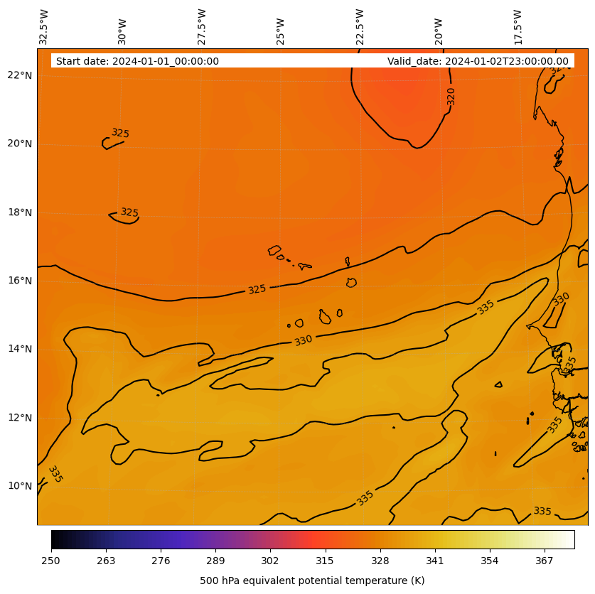 - Equivalent Potential Temperature (K)