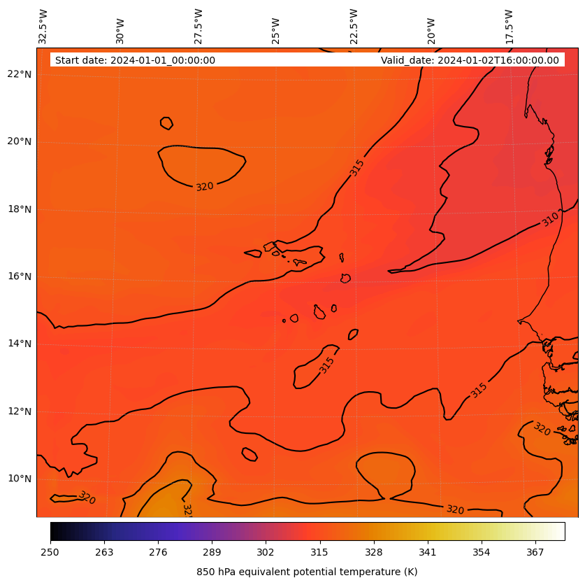 - Equivalent Potential Temperature (K)