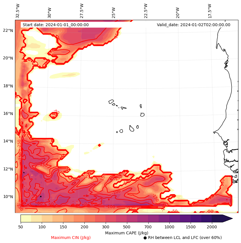 • Maximum CAPE (J/Kg)