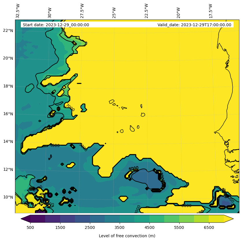 - Level of free convection (m)