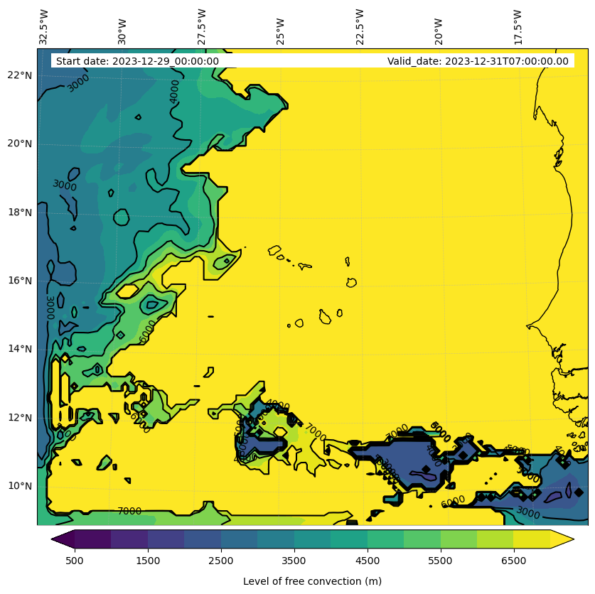 - Level of free convection (m)