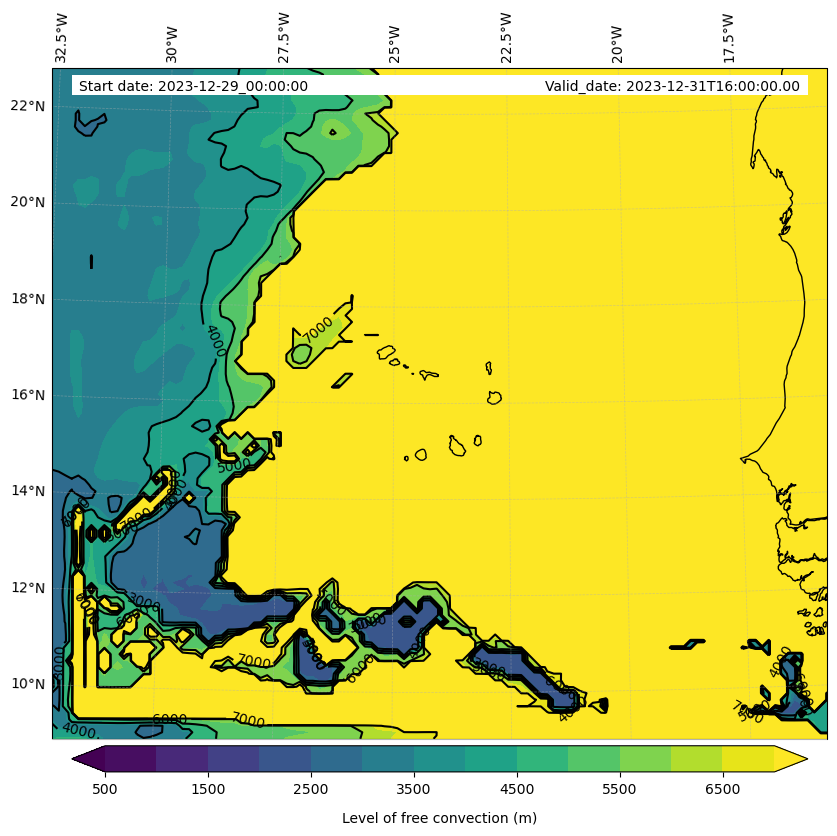 - Level of free convection (m)