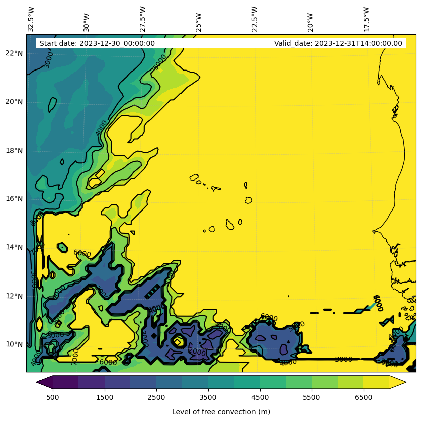 - Level of free convection (m)