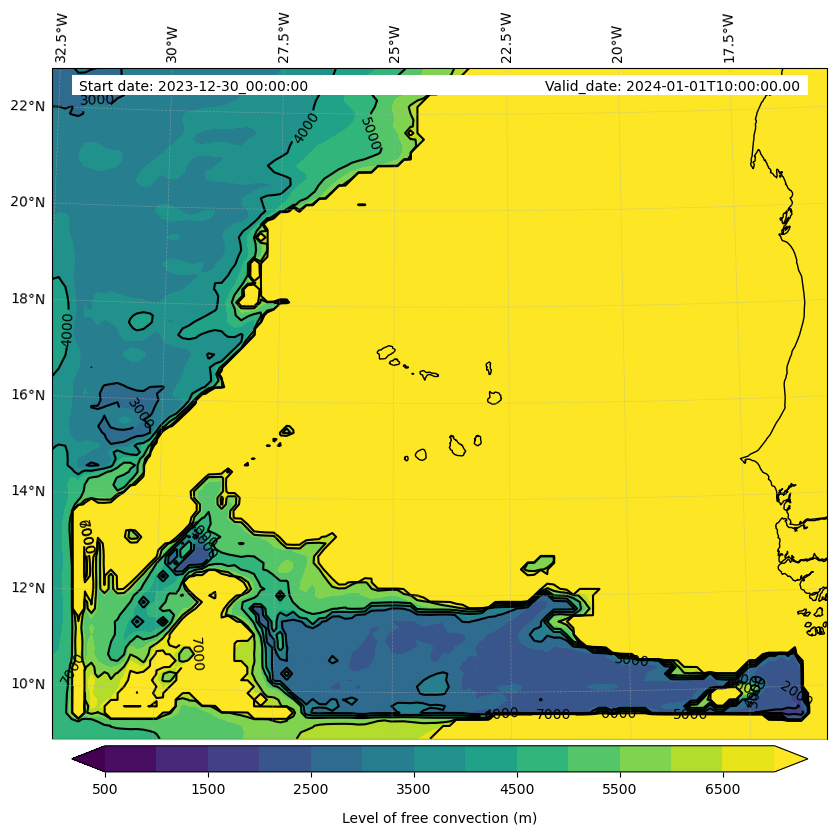 - Level of free convection (m)