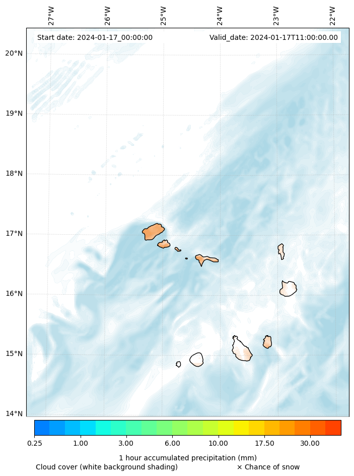 - Snow mixing ratio (g kg¯¹)