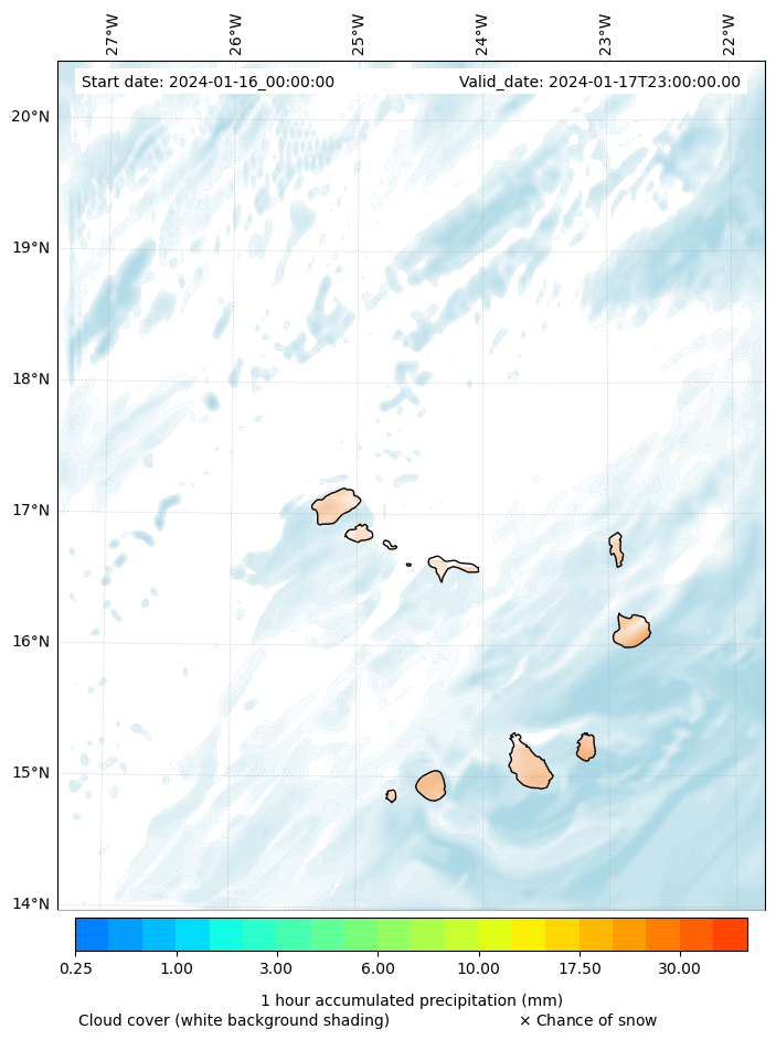 - Snow mixing ratio (g kg¯¹)