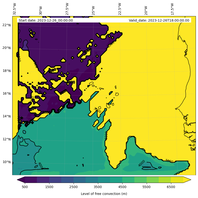 - Level of free convection (m)