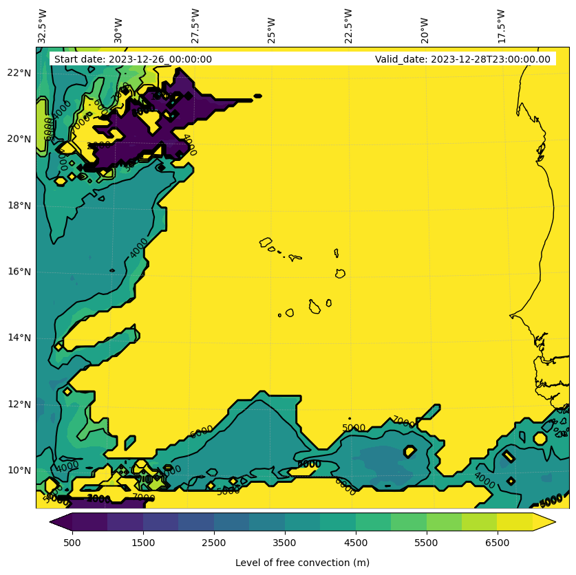 - Level of free convection (m)