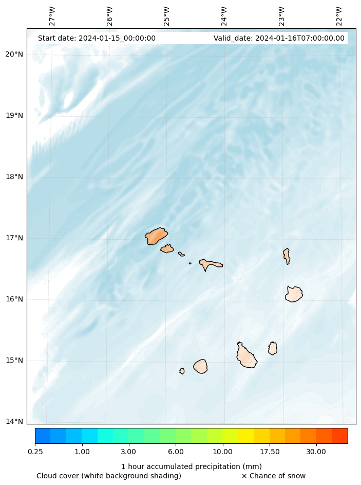 - Snow mixing ratio (g kg¯¹)