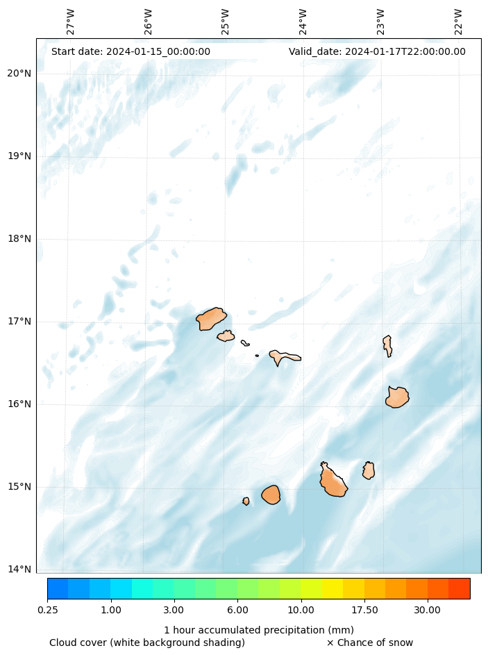 - Snow mixing ratio (g kg¯¹)