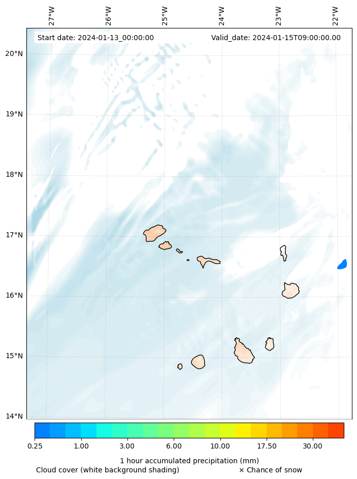 - Snow mixing ratio (g kg¯¹)