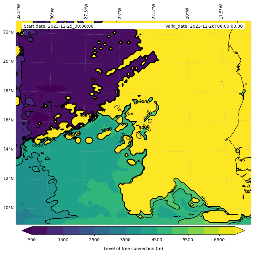 - Level of free convection (m)