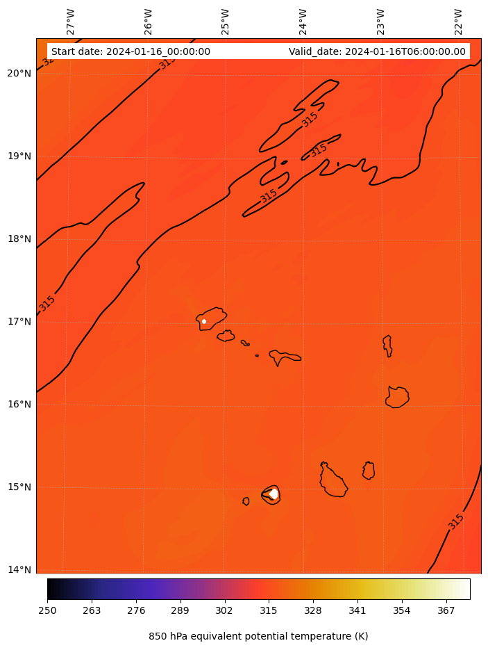 - Equivalent Potential Temperature (K)