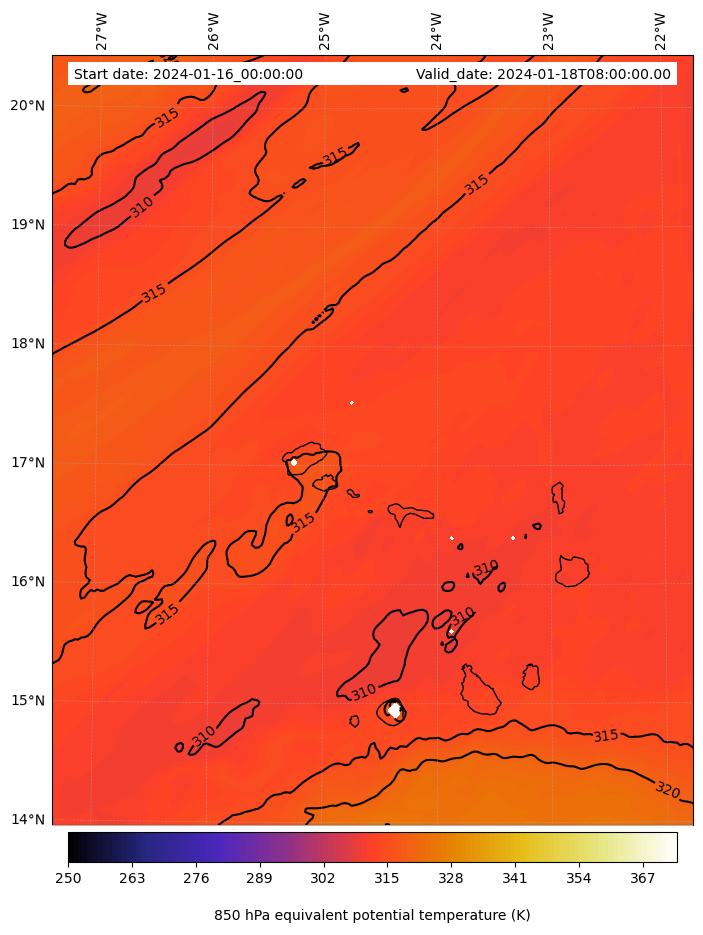 - Equivalent Potential Temperature (K)