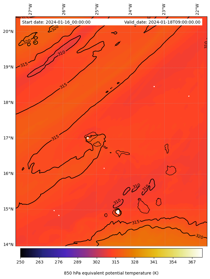 - Equivalent Potential Temperature (K)