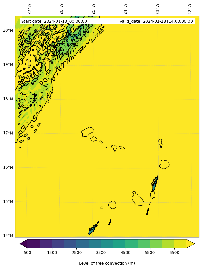 - Level of free convection (m)