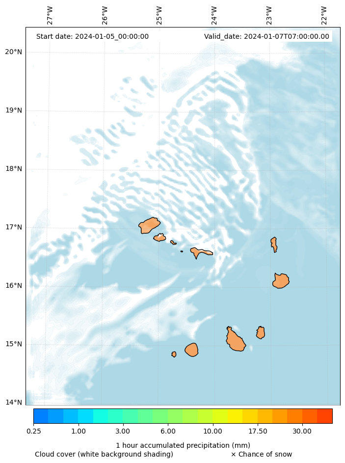 - Snow mixing ratio (g kg¯¹)