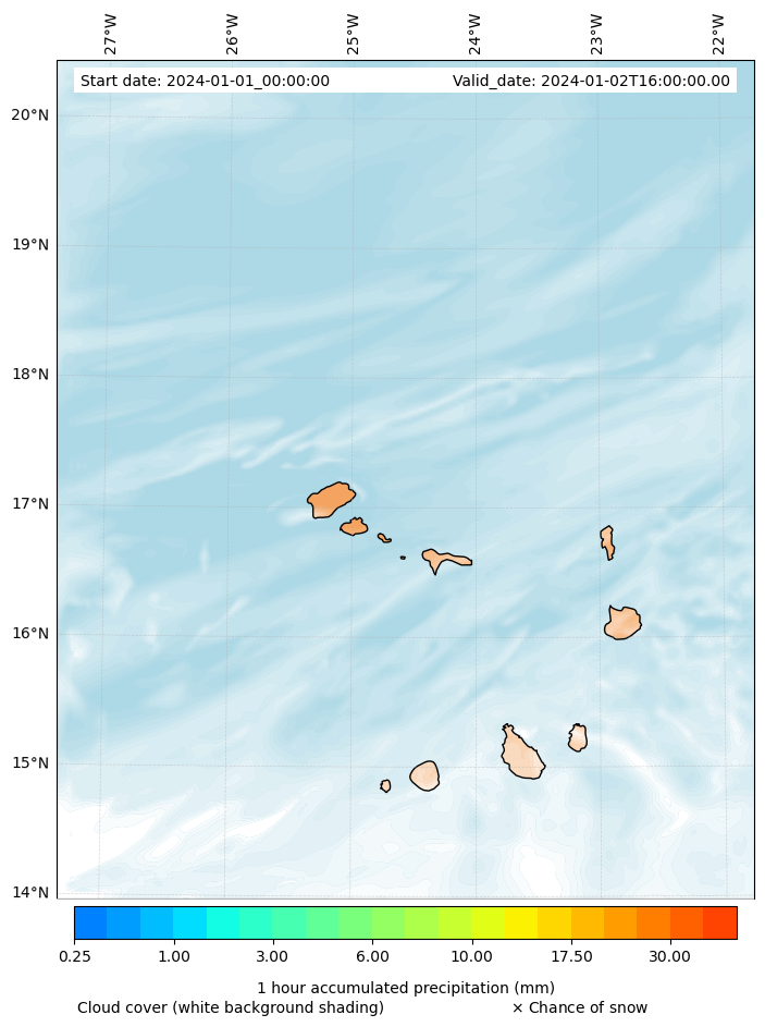 - Snow mixing ratio (g kg¯¹)