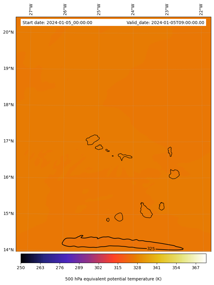 - Equivalent Potential Temperature (K)