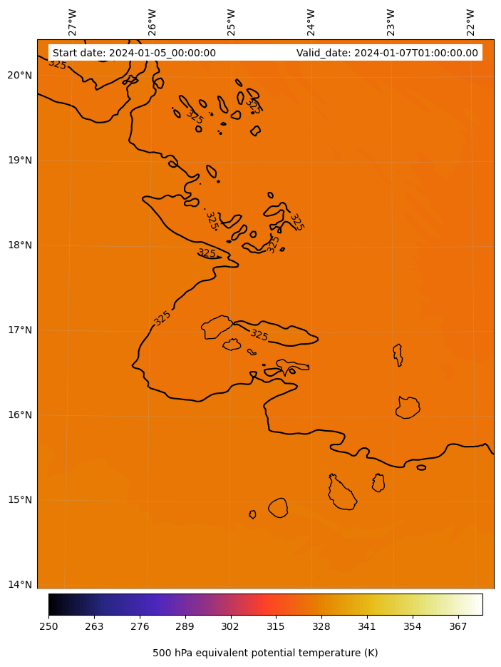 - Equivalent Potential Temperature (K)
