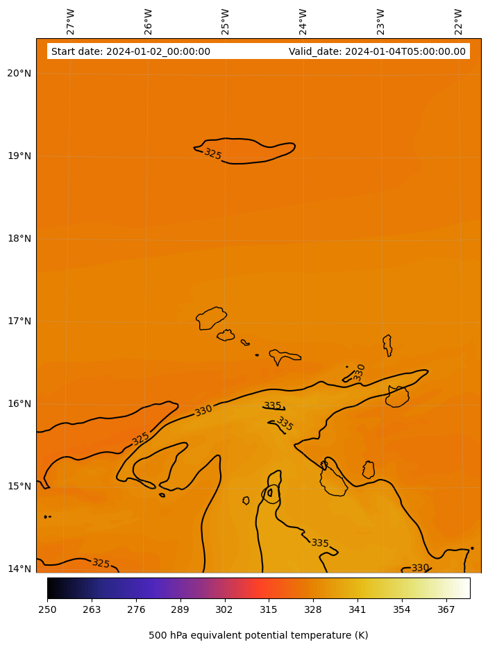 - Equivalent Potential Temperature (K)