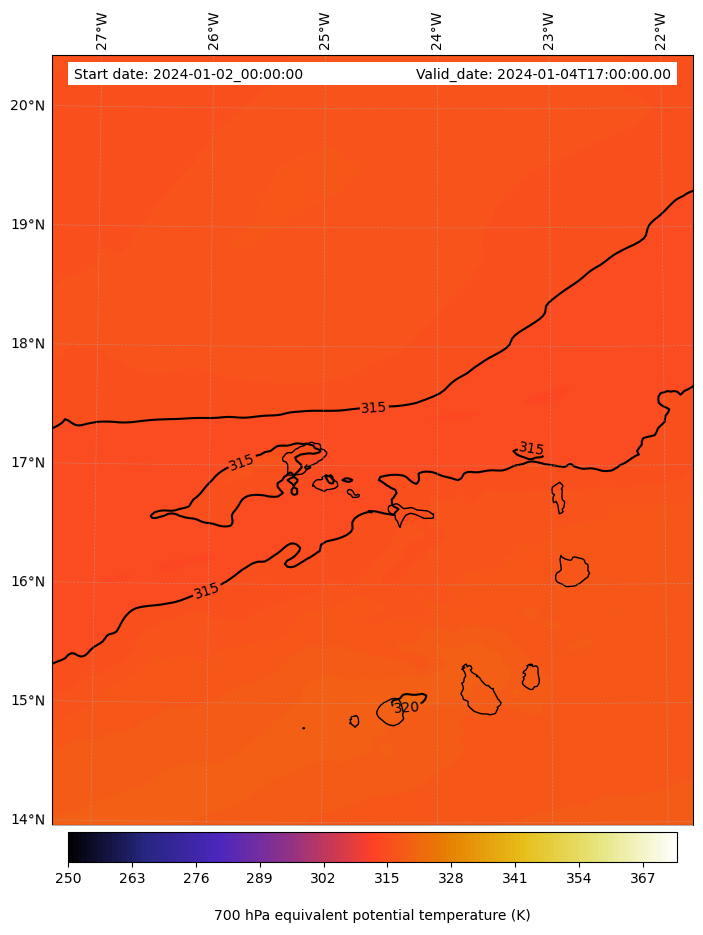 - Equivalent Potential Temperature (K)