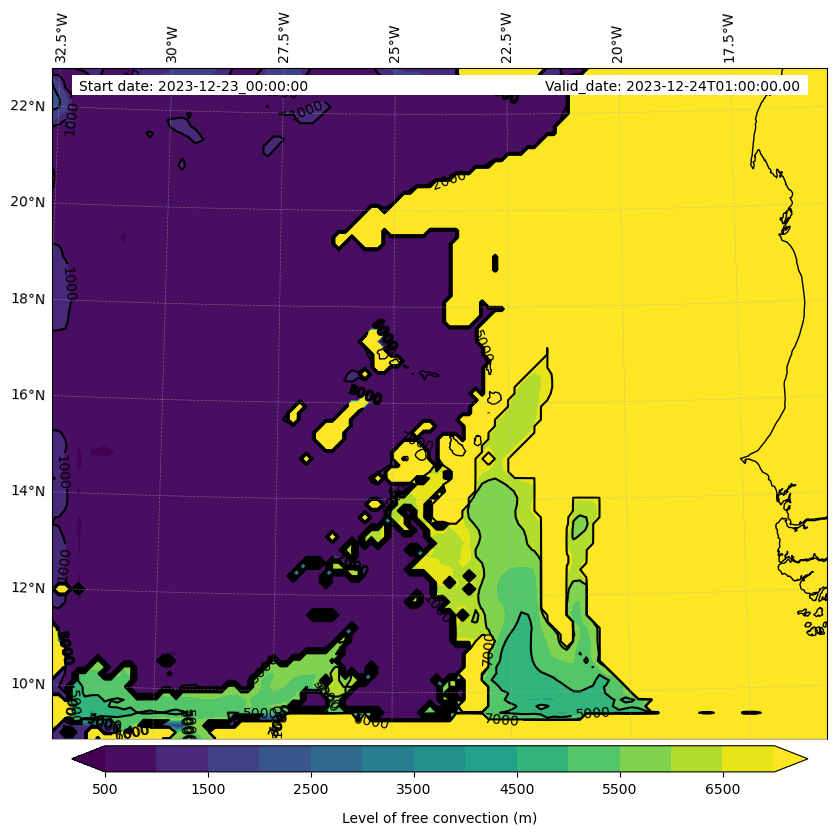 - Level of free convection (m)