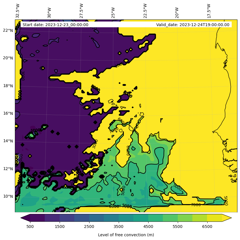 - Level of free convection (m)