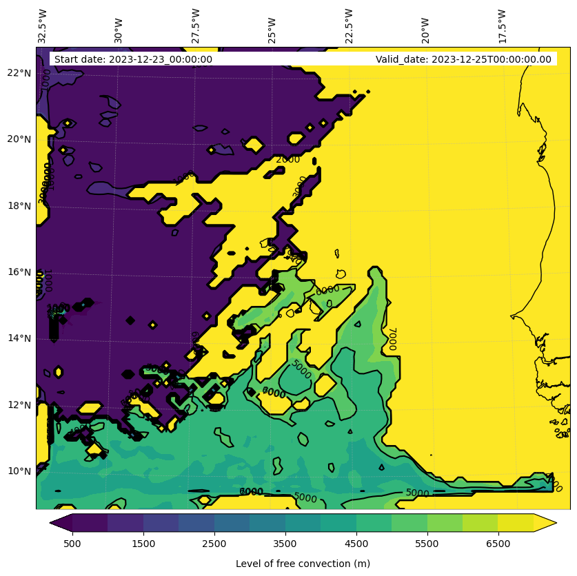 - Level of free convection (m)