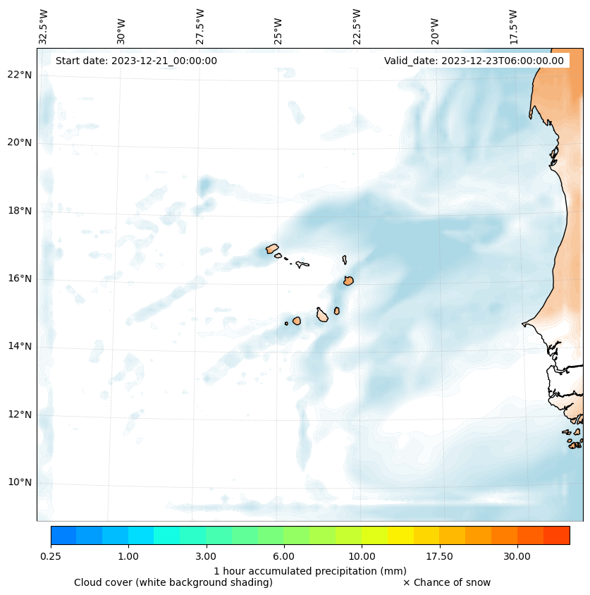 - Snow mixing ratio (g kg¯¹)