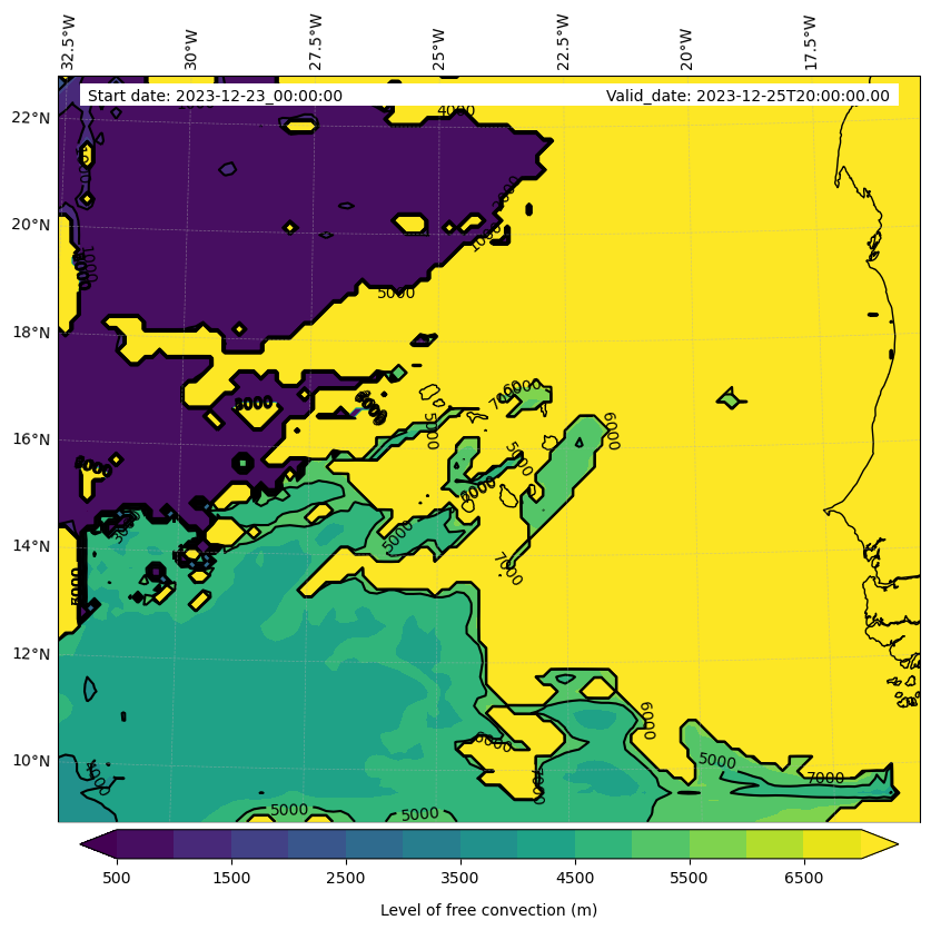 - Level of free convection (m)