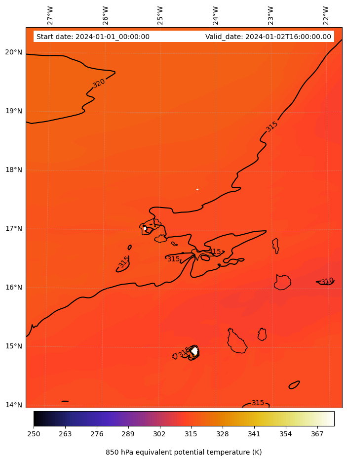 - Equivalent Potential Temperature (K)