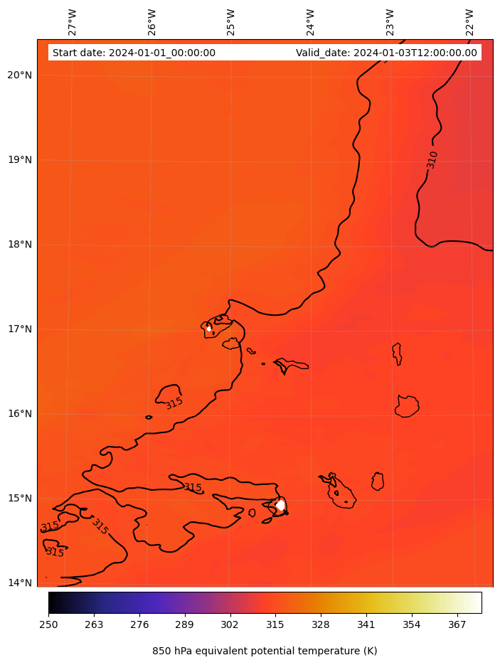 - Equivalent Potential Temperature (K)