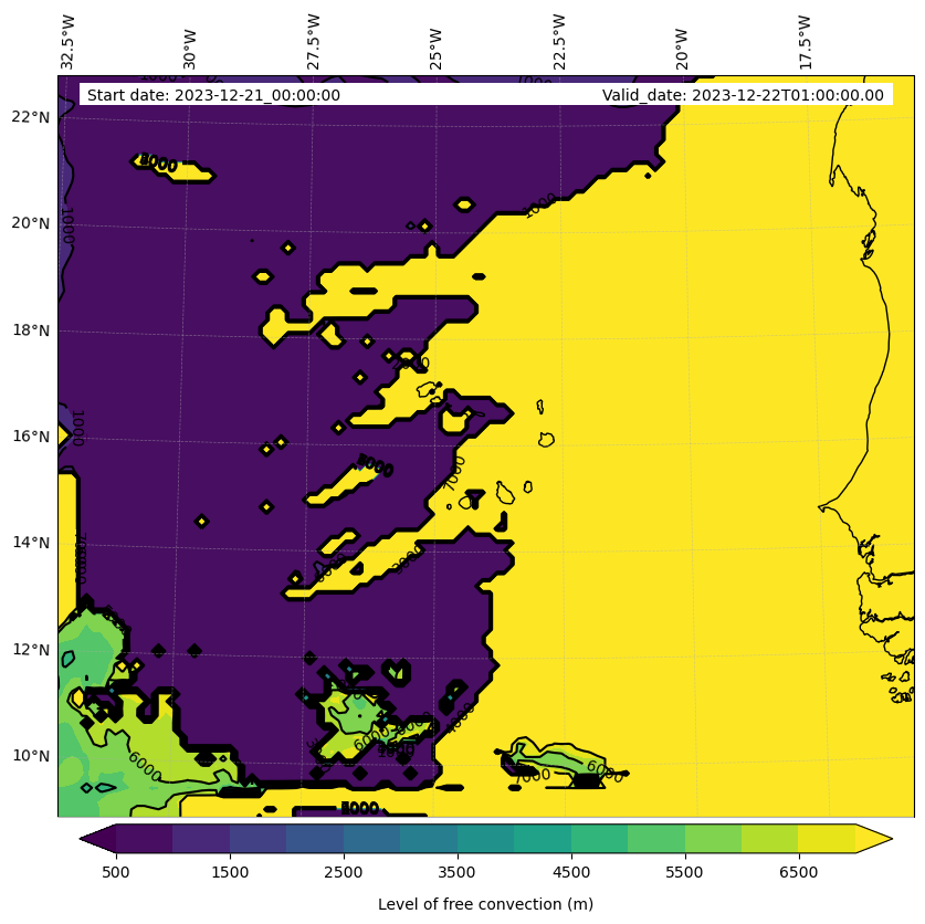 - Level of free convection (m)