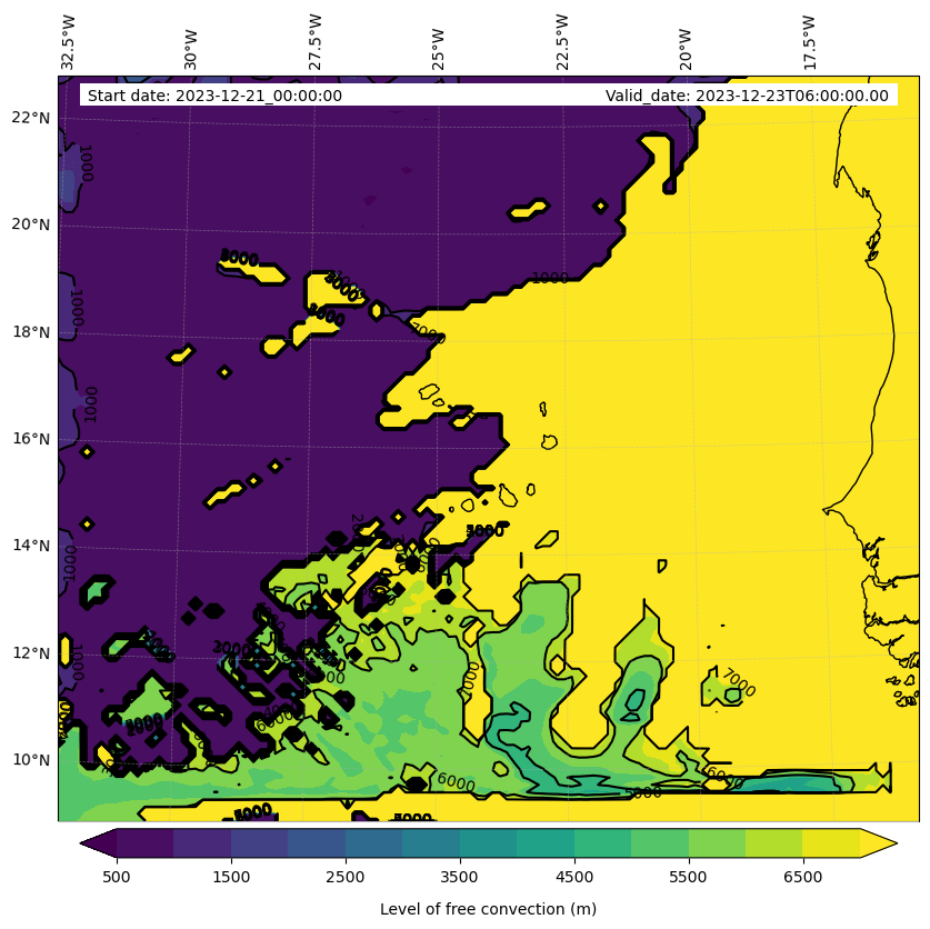 - Level of free convection (m)
