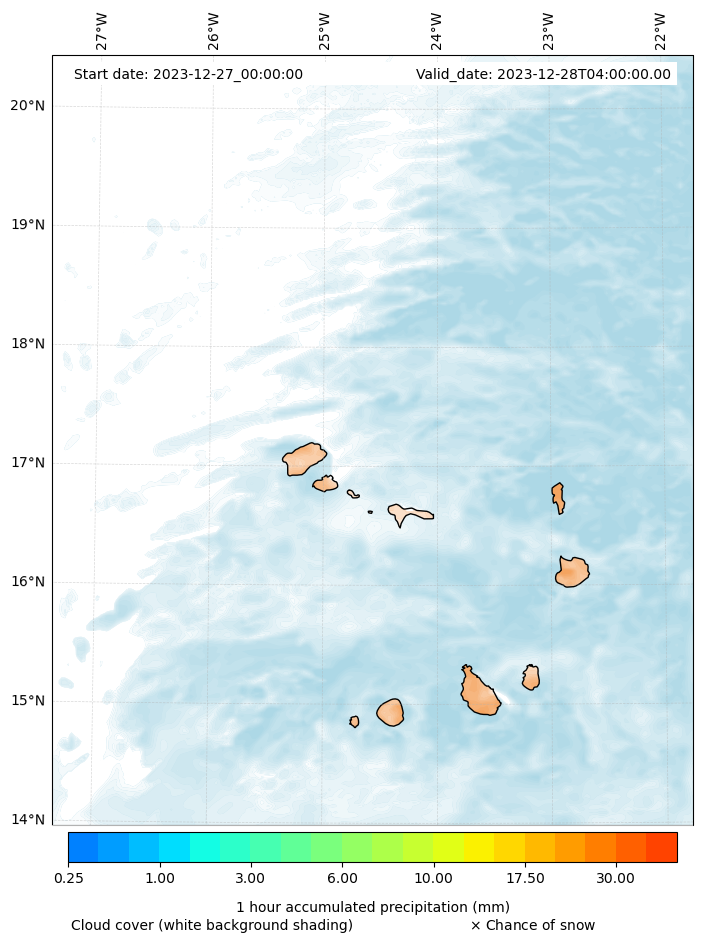- Snow mixing ratio (g kg¯¹)
