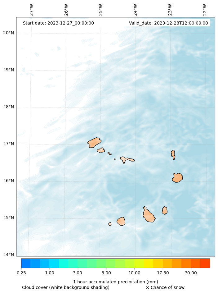 - Snow mixing ratio (g kg¯¹)