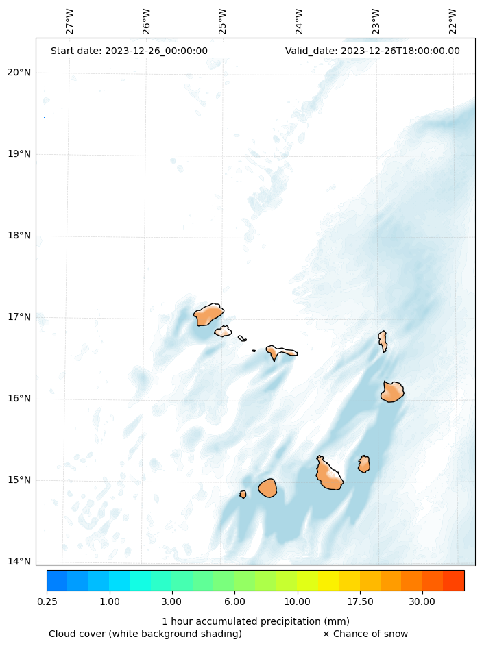 - Snow mixing ratio (g kg¯¹)