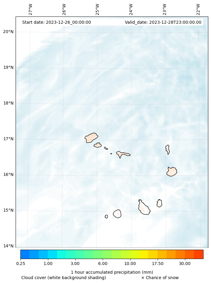 - Snow mixing ratio (g kg¯¹)