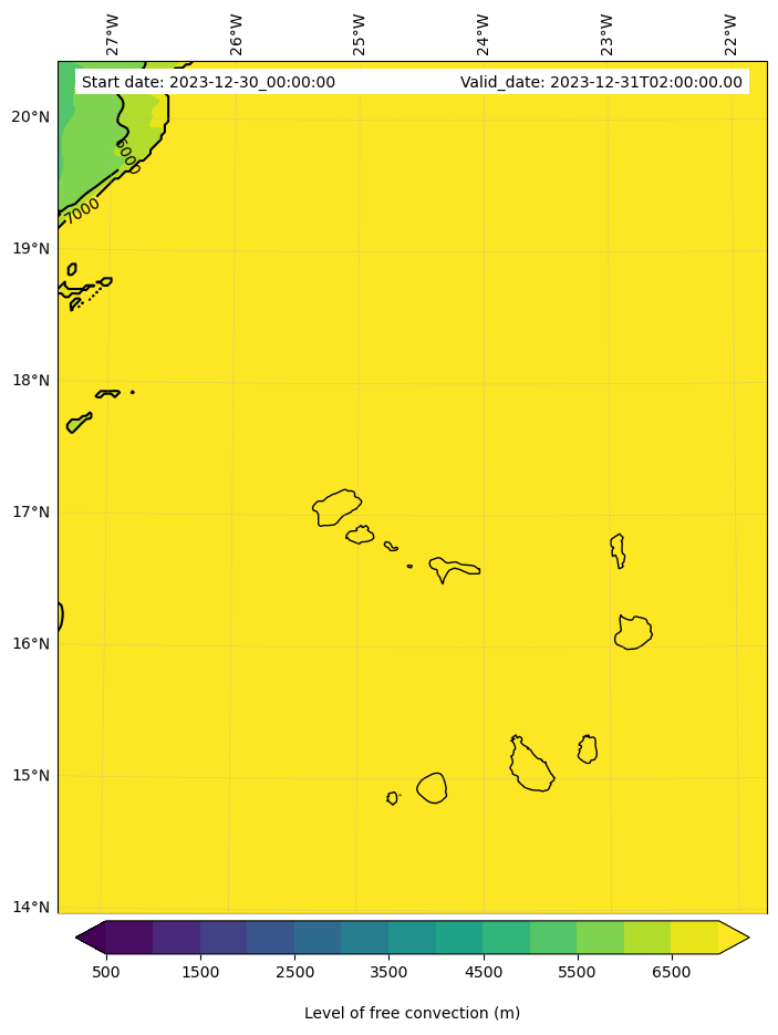 - Level of free convection (m)