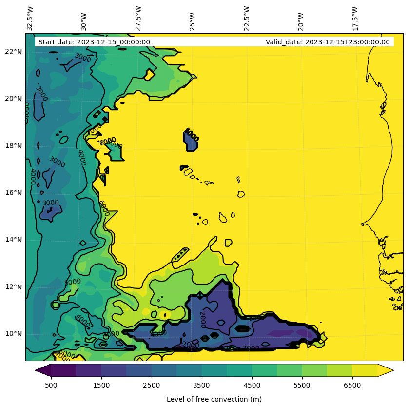- Level of free convection (m)